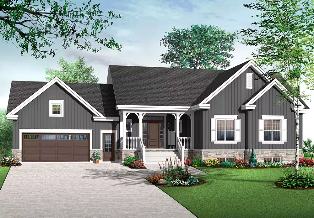 A welcoming covered front porch sets the tone and the interior opens to an open activity area with 9' ceilings, abundant windows, a well-centered staircase, and kitchen with lunch island and conversation nook. Three bedrooms include a master suite with private bathroom, a washer/dryer area and another full bathroom. Downstairs, we find three additional well-lit bedrooms. There is even a large family room with enough space for a pool table. The final surprise in this comfortable one-story home is a cold room. So many surprises in such an efficient home!