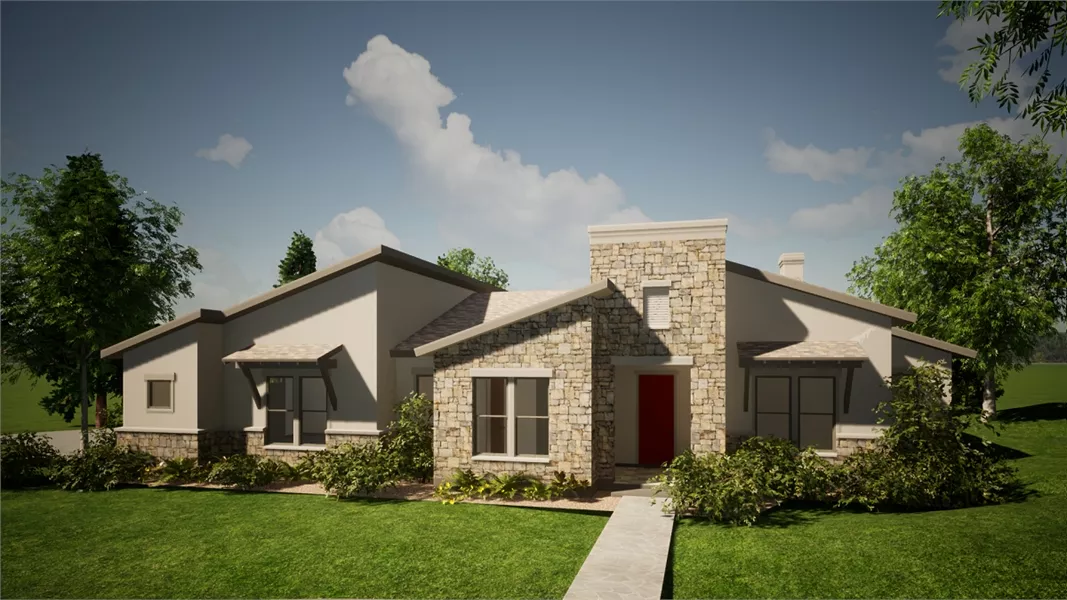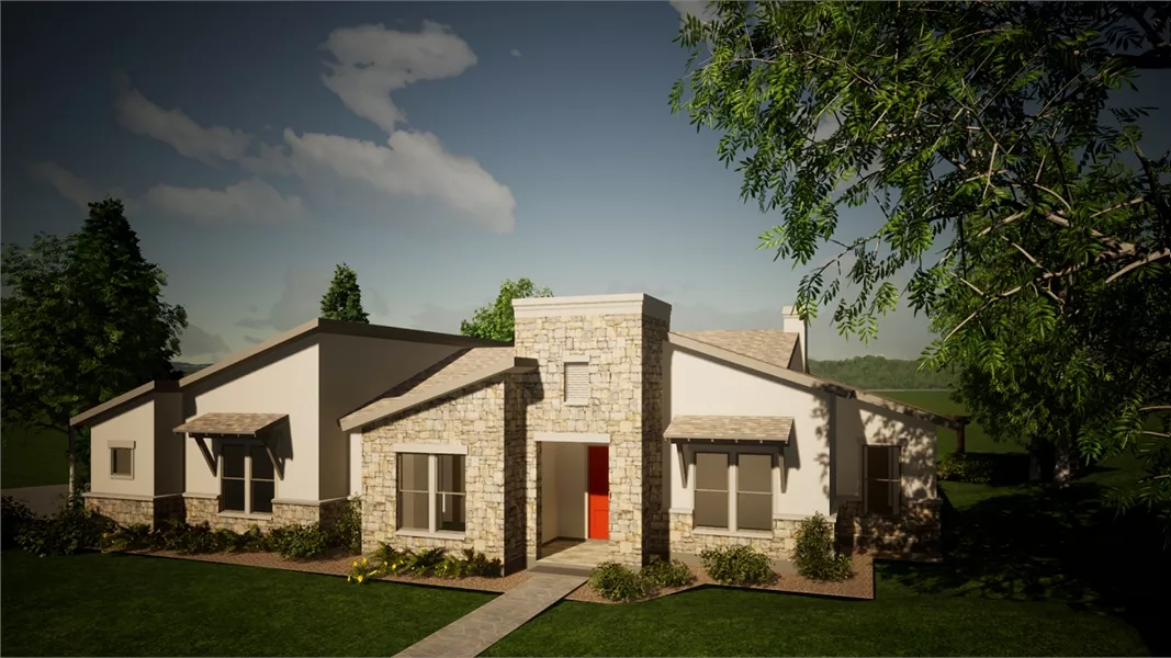 Wonderfully inclusive and beautiful both inside and out, this special Southwestern-inspired ranch is ready for a family of any size. Featuring a single floor of totally accessible and open spaces, the 2,713 square foot layout provides 4 bedroom suites for everyone to enjoy. And thanks to the inclusion of every room within a single level, people of all ages and abilities can easily enjoy all that this home has to offer. Beyond the impressive curb appeal which has some distinct modern flair to its traditional facade, the inside is ready to impress. Whether you enter via the side-entry garage and mudroom or from the front entryway, prepare to be amazed. The main areas greet you, including the totally bright and airy living room, along with the unique island kitchen and dining nook. There is also access to the formal study and the covered back porch too! From there, choose which of the bedroom suites you want to explore first. Notice how each one has its own walk-in closet and nearby bedroom, including the master suite which has its own of both! There is also a fully stocked guest suite too. Finally, take note of all of the built-ins and storage throughout the home, sure to add both function and organization to even the most busy of family lifes.
