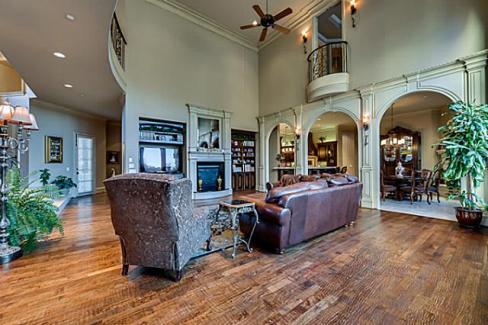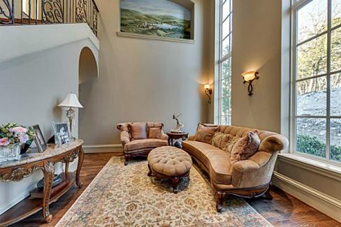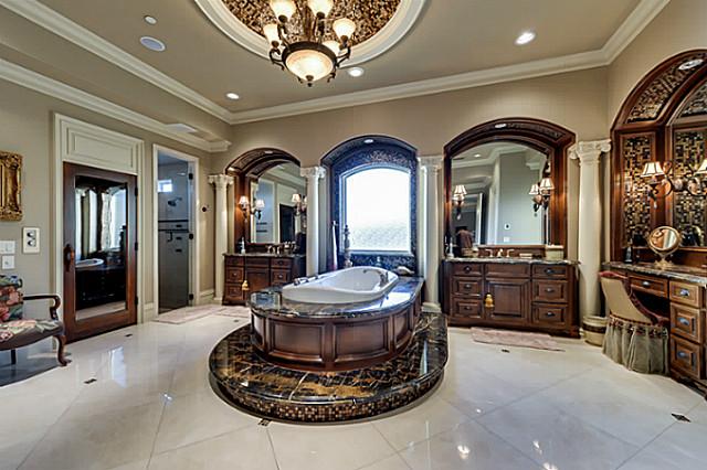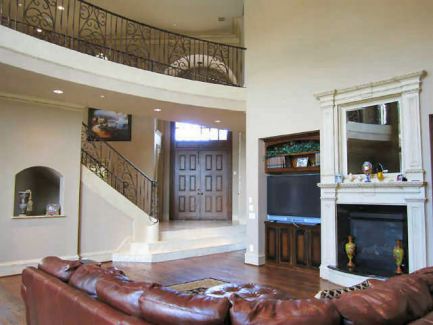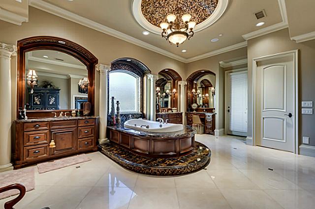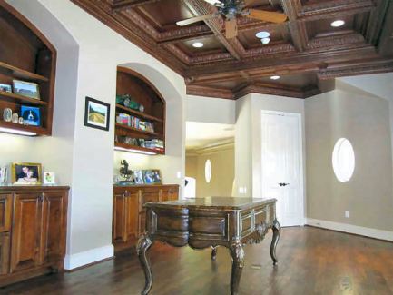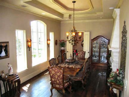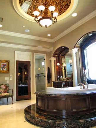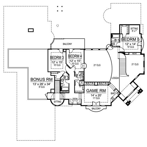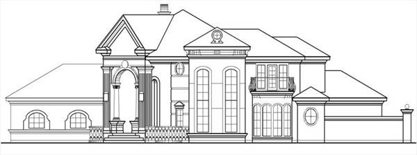 This European luxury house plan will end your search for your dream home. The two-story foyer leads into the living room, with an adjacent bar and entrance to the front landscaped garden. The family room's fireplace is flanked by built-ins, while large decorative pillars define the border of the family room and breakfast area. Enjoy your morning coffee from the cozy window seat or take it out onto the patio. The kitchen offers a built-in desk, pantry, butlery, island, and breakfast bar. The elegant dining room shares the see-through fireplace with the family room, while its proximity to the butlery makes serving the dining room a pleasure. The master suite boasts a curved sitting area and a see through fireplace to the lavish master bath. A handy exercise room opens directly to the utility room.