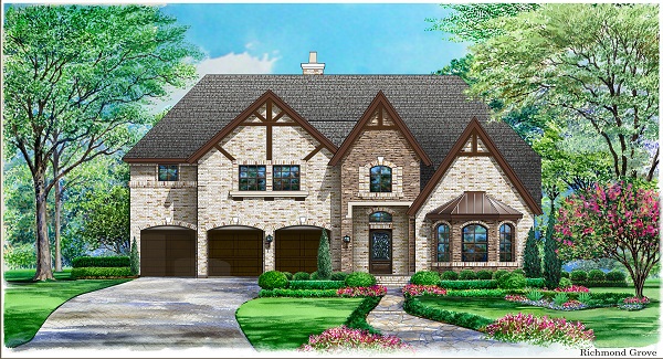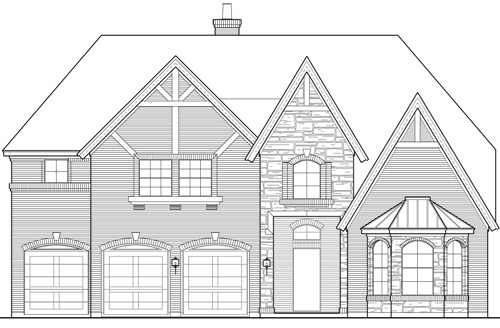 Come home to this lovely luxury house plan and enjoy all the amenities. The large two-story foyer offers access to a quiet study with bayed window sitting area and a family bedroom with walk-in closet and full bath. The family room, dining room, and kitchen are open to one another, divided only by the breakfast bar in the kitchen. Built-ins and a warming fireplace in the family room help to keep this family gathering area cozy. The large bank of windows allow for sun to stream through. The luxurious master suite boasts a bayed window sitting area, trey ceiling, plenty of windows, a lavish bath with separate shower, corner garden tub and large wardrobe. A three-car garage completes the main level of this luxury house plan. Upstairs, three family bedrooms with walk-in closets and full baths share space with the game and media rooms. There is plenty of storage in this luxury house plan. See Richmond Ridge and Richmond Valley for alternate elevations.