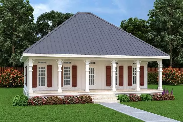 Straightforward designs matched with simply beautiful features create this perfect home. Great as a starter plan or even as a guest house added to your lot, the 960 square foot layout has all the necessities. With 1 bed and 1.5 bathrooms, this could even be a private rental unit to help earn some extra income. Whatever you need it for, you'll certainly love the inclusivity that is found throughout. From the welcoming covered front and back porches to the totally open living room, dining room and island kitchen areas, there is so much to do and enjoy. There is even a second level with a walk-up attic for easy and accessible storage options!