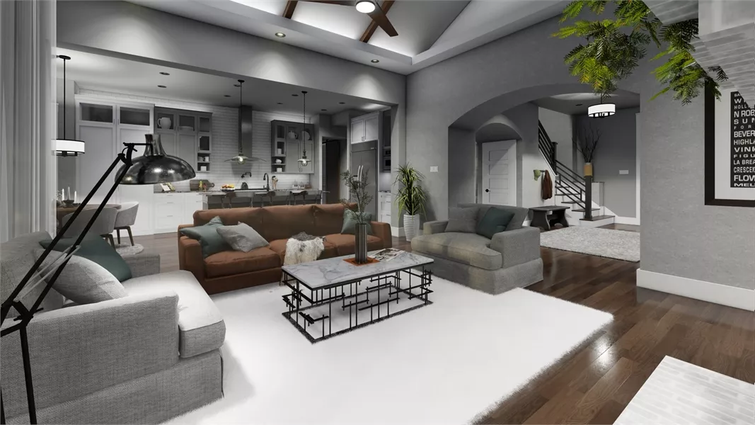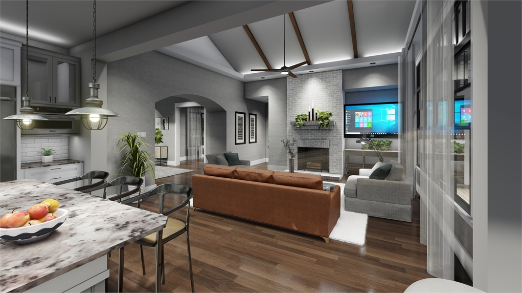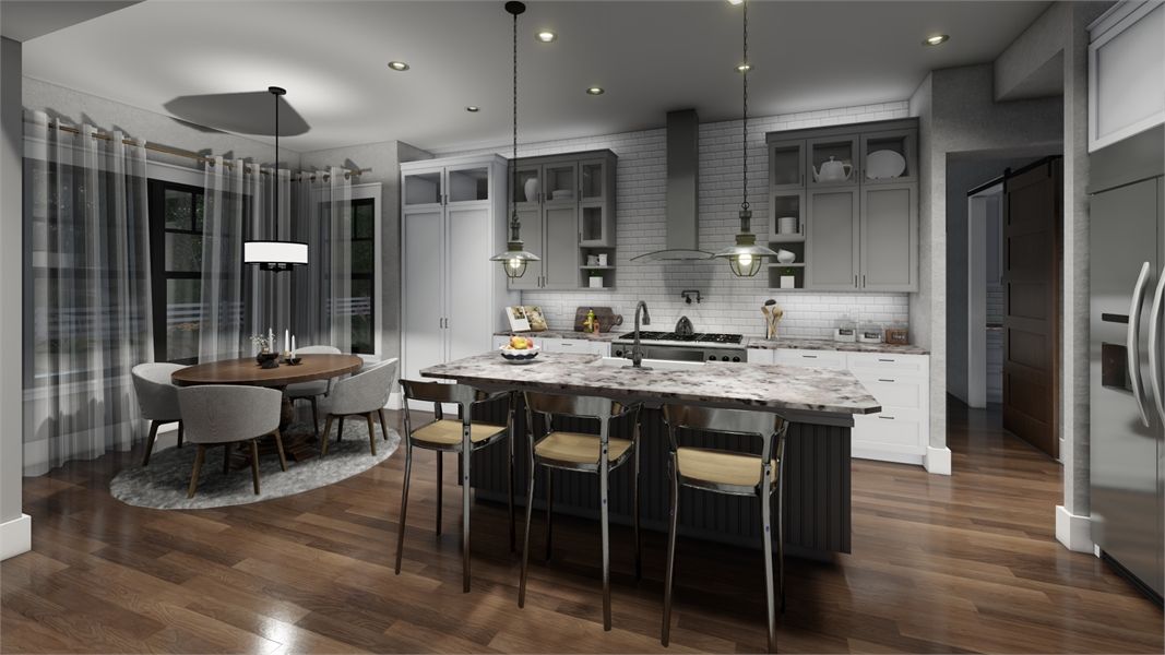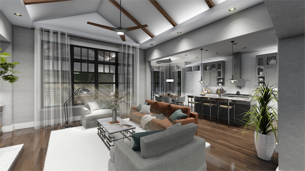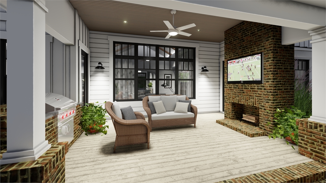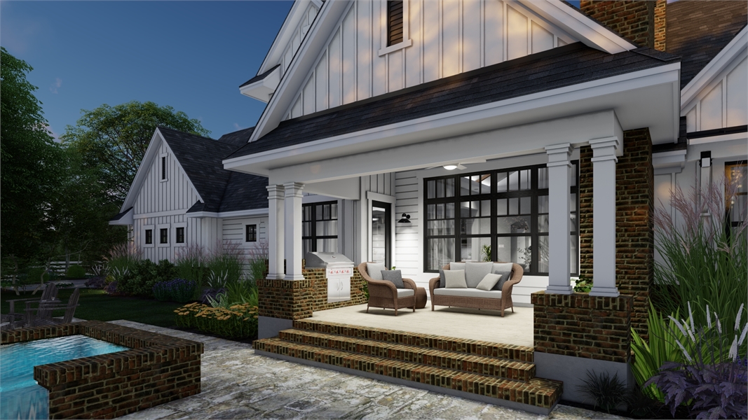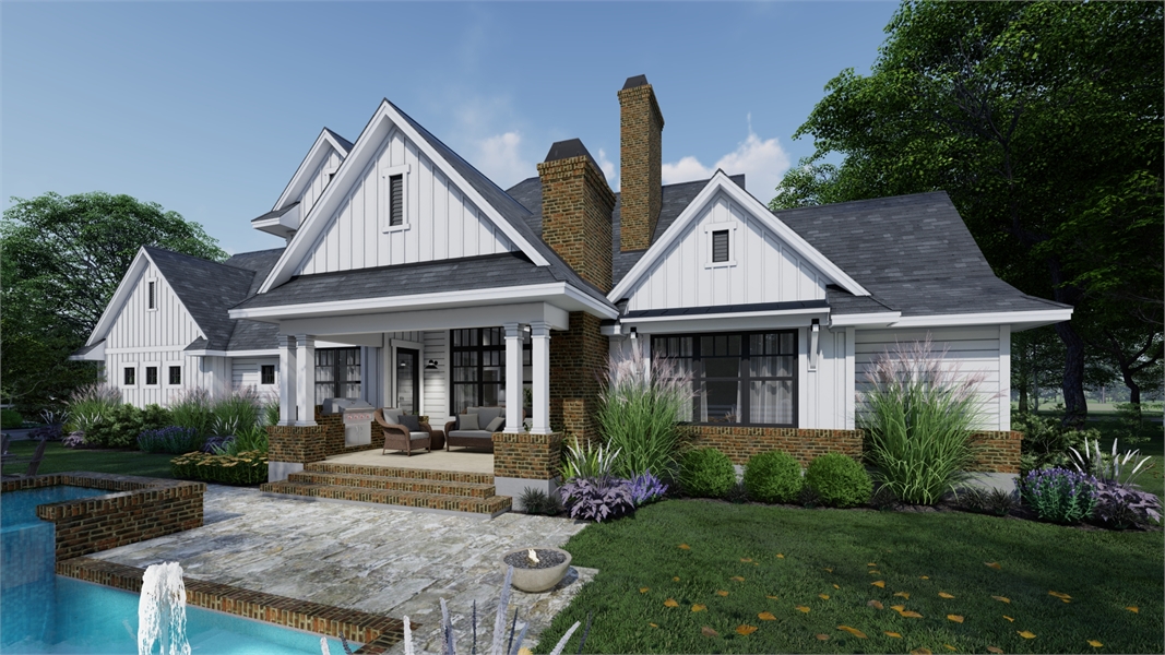 An absolutely stunning design makes this 2-story farmhouse style plan a must-see. Boasting 2,829 square feet of living space, this 4 bedroom, 3.5 bath home is perfect for a new or growing family, with tons of areas for everyone to enjoy! Modeled after the popular Spring Creek Farm (THD-7369), this new plan incorporates customer feedback and enhanced functionality throughout. The beauty of this home begins with first sight, as a beautiful wraparound porch captures your eye, as you imagine cool evenings spent sitting out front. Past the front porch, step inside on to the grand foyer, complete with a private study nearby. As you move further inside you will appreciate the open concept that creates a natural flow throughout. The rear-facing family room and its vaulted ceilings, joins with the gourmet island kitchen and breakfast nook, as well as your very own walk-in pantry! Directly off of the kitchen is the convenient mud room and laundry, which leads to the spacious 3-car garage. Back to the living room you will love the beautiful windows that bathe the area in natural light, as well as the nearby access to the covered rear lanai, featuring a built-in outdoor fireplace. The first floor is finished off with the amazing master suite, located off of the living room. Here, vaulted tray ceilings create a grand and open feeling, while the spa-style master bath and its dual vanities, join with a spacious walk-in closet, making your life as easy and relaxed as possible. The second floor is a result of customer requests, featuring an added 3rd bedroom, making the space wonderful for kids and guests alike. While two of the bedrooms share a full bath, the other has its own en-suite, making it the perfect spot for in-laws or visitors. Finally, a large bonus room sits over the garage, creating a great blank canvas for you and your family to put your own unique twist on this home. From a play room to a movie theater, or even just extra storage, the choice is yours!
