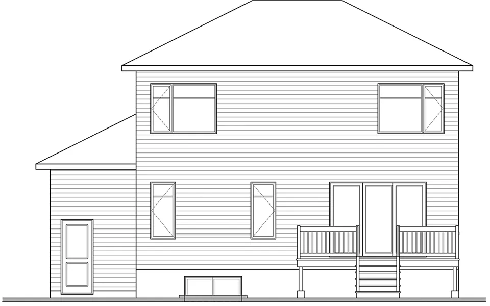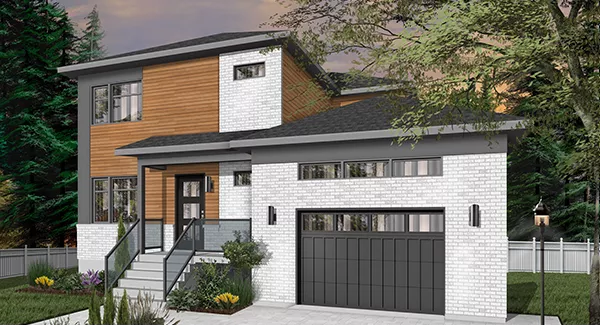 This two-story modern style home offering loads of space that you will appreciate. With so many amenities this 2,110 square foot house plan offers 3 to 4 bedrooms on the second level in addition to an open space concept in the common areas on the main level. Upon entering, you will discover a practical walk-in type closet as well as a half bath conveniently located near the home office. This same office space can easily be converted into a bedroom for guests, a playroom or even a simple reading area. The kitchen is strategically situated near the garage entrance and has a good size central island as well as a big pantry. In addition, the kitchen area is open to the dining area which is very practical for entertaining guests or family. The living room can be arranged in many different ways with your favorite furniture. The main bedroom or master suite offers a big walk-in type closet as well as a private bathroom with separate shower and double sinks. The 2 other secondary or kid’s bedrooms share a bathroom complete with a good-sized shower.  The laundry area is situated on the second level, close to the bedrooms. The garage entrance to the house is located near the kitchen area. The basement can be finished to meet your specific needs at any time as your family’s needs evolve.