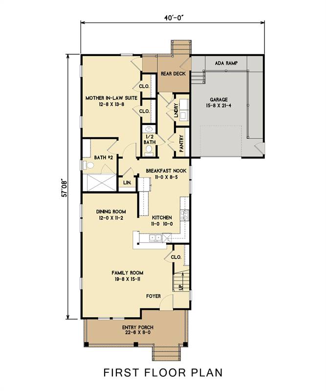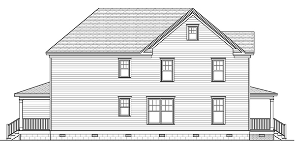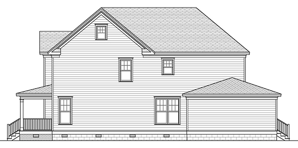 This Victorian style house plan model provides a one-car garage with a driveway from the street. Inside the garage there is a handicapped ramp for easy wheelchair entry to the covered rear porch. A handicapped equipped Bedroom Suite on the first floor is immediately adjacent to the rear porch entry. The Victorian exterior style of this house plan provides a bonus of attic space that is potentially available for finishing into fifth bedroom with a bath. The main house structure is just 24-0 feet wide, not including the 16-0 wide garage.