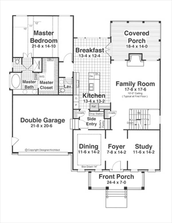An elegant hall entry off the breakfast room provides access to a powder room and access to the master suite located outside the two-story section of the house. It features a dramatic stepped tray ceiling and over-sized bath. The master closet even has W/D connections for those who don't want to climb stairs.