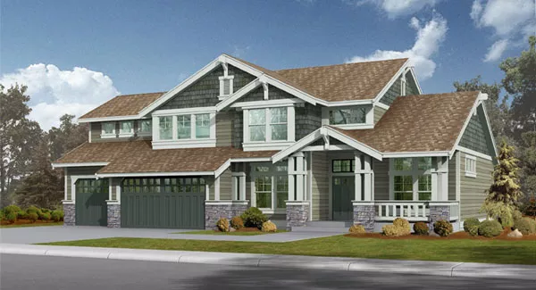The Rockmore represents luxurious simplicity, evoking an era of innovation and solid craftsmanship. The beautifully detailed front and rear porches impress with their open beams, doubled columns and stone bases. Inside, the efficient floor plan provides clear circulation, formal and informal spaces, a grand chefs kitchen and ample storage. The upper floor features a huge vaulted master suite with sitting area, two secondary bedrooms, a bath and a convenient laundry, plus a large vaulted bonus room. The Rockmore is a plan designed to create a sense of unassuming elegance.