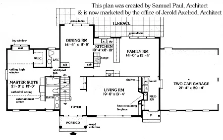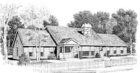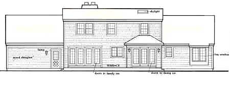 This lovely home looks long -and it is. It appears to be a ranch - but it is not. It affords gracious one level living with a spacoius first floor master suite and two more generous 2nd floor bedrooms. It provides grand formal rooms as well as a lovely open kitchen and family room. It could be built with a front entry garage if desired.