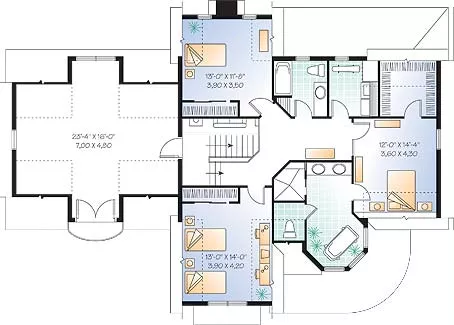 Exterior flourishes abound from a romantic era--turret detailing, embellished covered porch, and balcony effects. Inside, this design lives for today. The kitchen opens on two sides to a breakfast nook and formal dining room with nearby half bath. The family room snuggles up to a fireplace, and three gorgeous bedrooms, two baths, and bonus room live above the two-car garage.