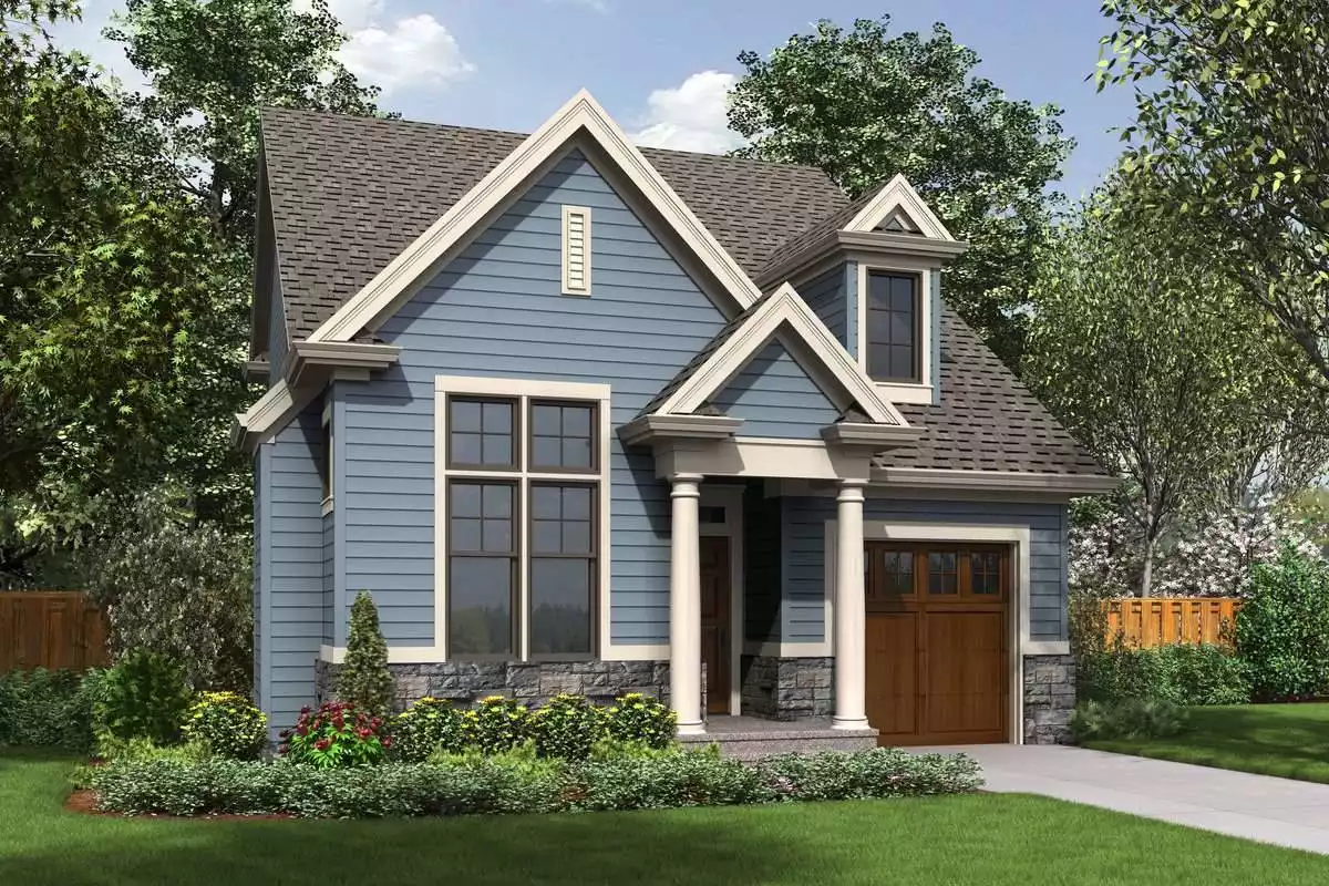 A simple yet practical home, this traditional craftsman style house plan gets back to the basics of comfortable living. This 1,454 square foot plan provides the perfect amount of space for the homeowner who values straightforward living while sticking to a budget. The 3 bedrooms and 2.5 baths are spread throughout this home’s 2 floors. The main floor has a large living and dining room combination, complete with a gorgeous fireplace. The kitchen has an amazing island with capabilities for barstool seating. Off of the kitchen is a private office suite, perfect for the homeowner who works from home or needs to get a few things done after the workday. The second floor finds 3 large bedrooms, including the master suite. All throughout this plan, the home is accentuated by high windows and vaulted ceilings, making it feel open but still welcoming to all who enter.