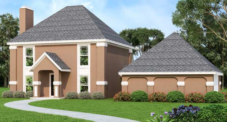 This modern and affordable house plan with a European flair has two stories, three bedrooms, 2.5 baths and 1,540 square feet of living space. Invite friends over to relax and chat in the ample living room in this home plan, which accesses a rear patio that is partially covered. The efficient kitchen serves the eating nook and the dining room with ease. Note the convenient powder room. The garage with storage is actually optional, connected to the house by a covered breezeway. Upstairs, the master bedroom is spacious, with a walk-in closet. A full-sized tub anchors the personal bath, which also offers a single-sink vanity. The washer and dryer are located near the bedrooms in this home design, for ease of use. Our customers love the home's stucco exterior.