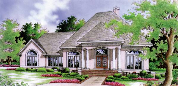 This super energy saving plan has a stunning interior accented with a variety of ceiling styles. The kitchen, dining, living, foyer and front bedroom all have 12 ceilings for a very impressive interior. The master suite has a vaulted ceiling to accommodate the large circular transom window placed on the front of the home. Although compact, the kitchen has a well placed eating bar and a built in pantry. If outdoor entertaining appeals to you, the fabulous king size rear porch is sure to please.