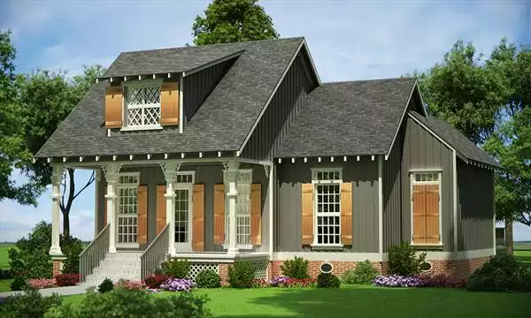This award-winning plan was recently recognized by ENERGY STAR as one of the most efficient home plans. The wise use of space creates a fully functional and spacious home tucked within a very compact space. The kitchen is full size and boasts a large floor to ceiling pantry. The island is constructed on casters so that it can be moved to create additional space. The master suite has a dressing room, full bath, large walk in closet and easy access to the utility room. The secondary bedrooms have large closets and private access to the bathroom. All bathrooms feature a spacious linen closet. An enlarged rear entry has a French door with sidelights that opens on to a spacious deck that is perfect for entertaining.