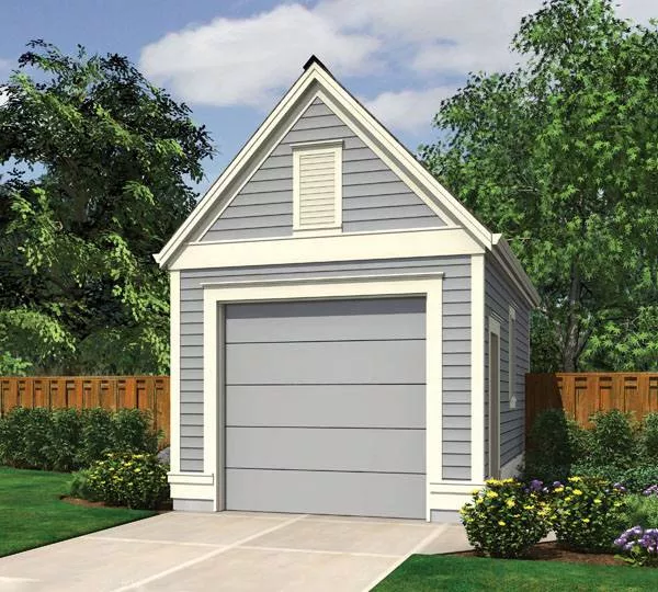 With its flush door, clean woodwork, lap siding and two windows: this detached garage makes an excellent addition to your traditional or contemporary home.