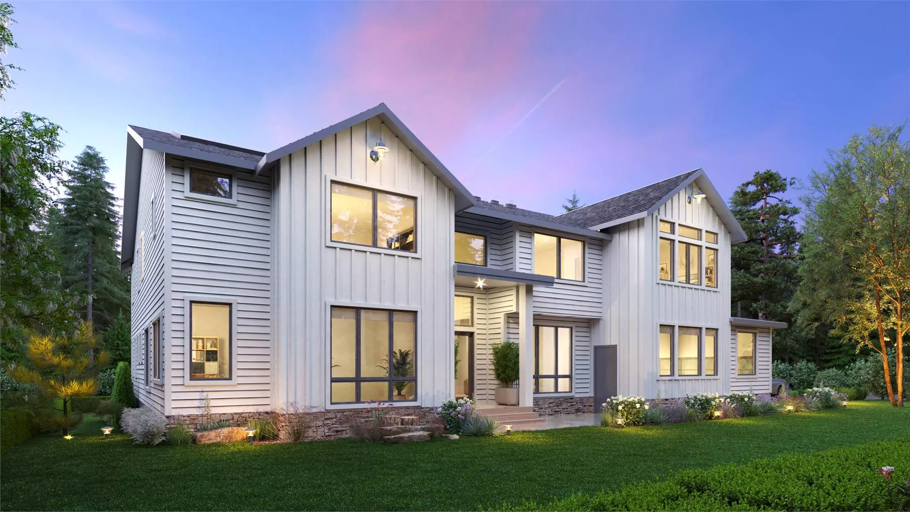 Experience luxury in this exquisite Transitional 2-Story house plan spanning 6,202 square feet and boasting 5 bedrooms and 5.5 baths. The home also offers a side-entry garage capable of accommodating 3 vehicles. Step through the two-story foyer, which gracefully leads into a grand great room adorned with stunning windows that extend to the height of the ceiling. Positioned to the left of the foyer is a living room and home office, while a formal dining room graces the right side. Entertaining becomes a pleasure in the gourmet kitchen, complemented by a convenient pass-thru prep kitchen/pantry. A main-level bedroom suite caters perfectly to guests, and a well-organized mudroom offers dedicated space for arranging shoes, bags, and outdoor attire. Upstairs, an expansive master suite transforms into a serene haven for the homeowner. Just across the corridor, two bedroom suites share a charming sitting area or playroom. A catwalk leads to bedroom 4, joined by a spacious bonus/media room, further elevating the home's adaptability and allure.