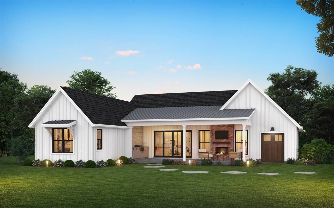 This 1 story 1,960 square feet modern farmhouse is a classic design with elevated amenities.