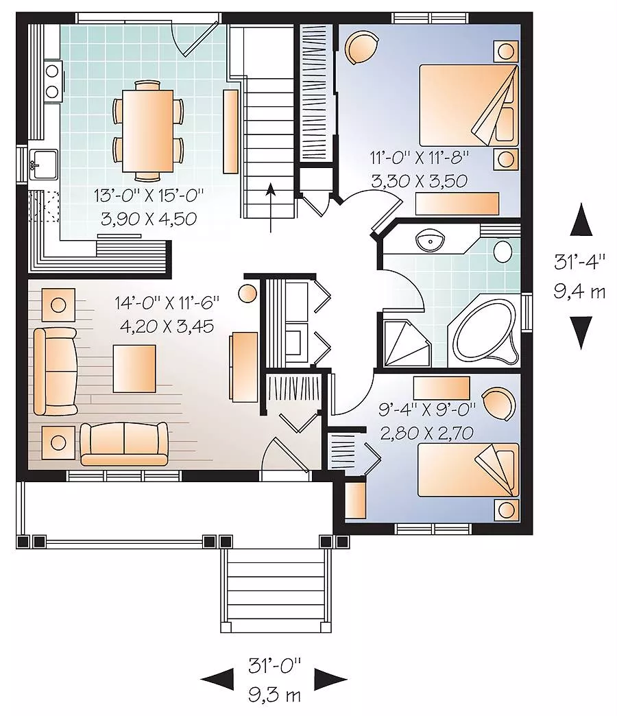 Each set of construction documents includes detailed, dimensioned floor plans, basic electric layouts, cross sections, roof details, cabinet layouts and elevations, as well as general IRC specifications. They contain virtually all of the information required to construct your home. The typical plan set does not include any plumbing, HVAC drawings, or engineering stamps due to the wide variety of specific needs, local codes, and climatic conditions. These details and specifications are easily obtained from your builder, contractors, and/or local engineers.