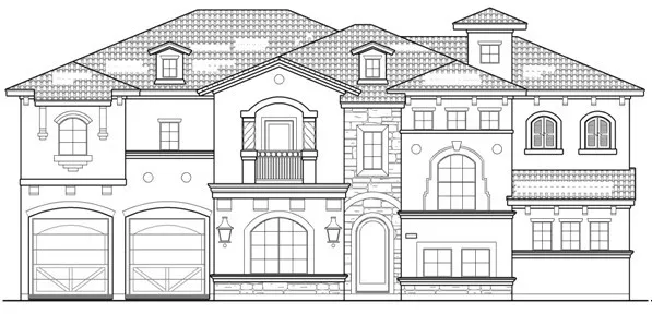 This luxury Tuscan style home can end your search for your dream home. Enter into the two-story foyer, flanked on one side by the wine grotto with its warming fireplace and bar. On the other side is the elegant dining room with tray ceiling. The corner fireplace in the family room will warm the open kitchen and breakfast room as well. The breakfast room has easy access to the patio. The master suite has a tray ceiling and boasts a private bath with his and hers vanities, separate shower, garden tub, and large wardrobe. A hobby room sits behind the two-car garage. Upstairs, three spacious bedrooms with tray ceilings, walk-in closets, and full bathrooms share space with a game room with card area, quiet study and media room. You'll enjoy the views from above to the stunning spaces below, completing this Tuscan luxury house plan.