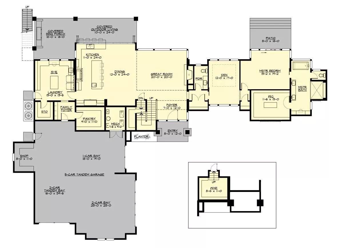 Beautiful and functional, this two-story modern and prairie-style plan is the perfect place to call home. Savono’s 4,045 square feet of living space includes 4 bedrooms and 3.5 bathrooms. The master bedroom, complete with large master bathroom and walk-in closet, is located on the main floor. Also on the main floor is the inviting and open concept kitchen, dining, and great room, providing ample space to spend time with family and friends. For wine aficionados, there’s even a wine cellar to store your treasured vintages. The additional three bedrooms are comfortable, private, and located on the upper floor alongside a bonus room that could be used as an office space or playroom. Host a family movie night or watch the big game in the main floor den. It’ll be easy to accommodate all your guests with the 1780 square foot 5+ car garage, which also includes a bonus space to store tools or work on projects. Outside you'll enjoy plenty of outdoor areas, including a sun deck, covered porch, outdoor living space, and patio. Those spaces are perfect for hosting parties or just enjoying your morning coffee in peace while watching the kids play outside. Savono’s eye-catching and distinctive style will be the talk of the neighborhood and the inviting layout both indoors and outdoors allows for plenty of opportunities to relax and unwind.