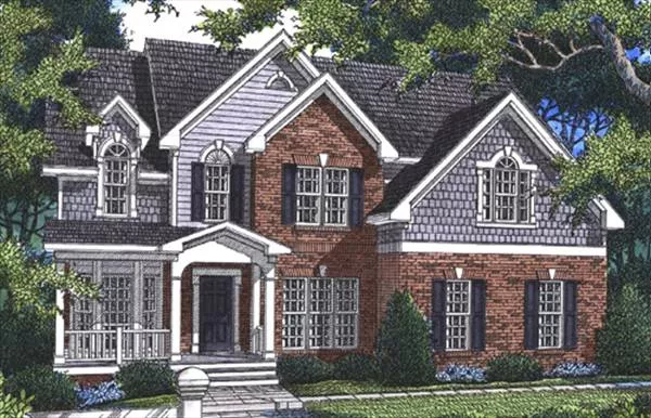 Although compact with an overall width of only 48' this design shows large. The entire rear of the house is open. The kitchen takes advantage of its corners by angling the sink on one side with windows on both walls and a pantry on the other maximizing storage. Even the staircase located on the rear wall brings light into the house with a large window on both landings. This makes for comfortable access to the terrace level where there is room for expansion. Four bedrooms upstairs provide room for everyone.