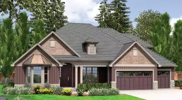 At the other end of the floor plan, a hallway leads to a bath and two additional bedrooms. These rooms are conveniently close to the laundry room, which includes a bench and coat pegs. A storage room is also above the garage.