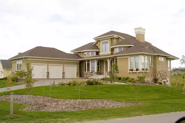 A circular study and dining room offset a welcoming covered entry to this home. Both of these dramatic rooms have high beamed ceilings and define the open flow of this plan. Three large bedrooms on the upper floor with two additional on the lower floor gives a family room to grow, while the adults enjoy the main floor master suite. The lower level also includes an exercise, media, and game room for the active family.