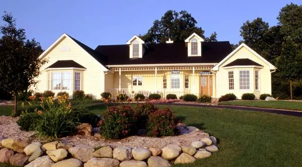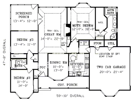 A lovely front porch with a cameo front door, decorative posts, bay windows and dormers gives this country-style home extra sparkle, making it an all-time favorite. In the Great Room, a tray ceiling adds style, while a neat wet bar makes parties simple. I included a quiet screened porch nearby to provide the perfect place to enjoy a summer afternoon. The eat-in kitchen faces the front porch and street, as does the bayed dining room. A high tray ceiling is also designed for the master bedroom, which is separated from the other bedrooms. Construction blueprints include all foundation options, including an alternate daylight basement version. See our plan no. THD-3702 for this plan with a bonus loft at the second floor.