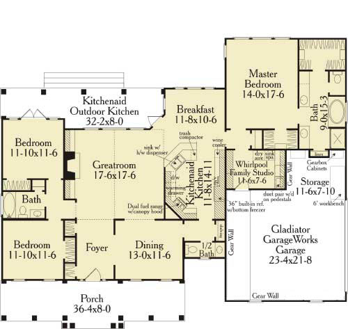 This dream home presents an impressive kitchen featuring Kitchenaid Architect Series appliances. The Whirlpool Family Studio series creates a magnificant laundry room. In the garage Gladiator Garageworks makes organization a snap. A great split bedroom design with a vaulted great room, windows galore and a large rear porch featuring the Kitchenaid Outdoor Kitchen series.