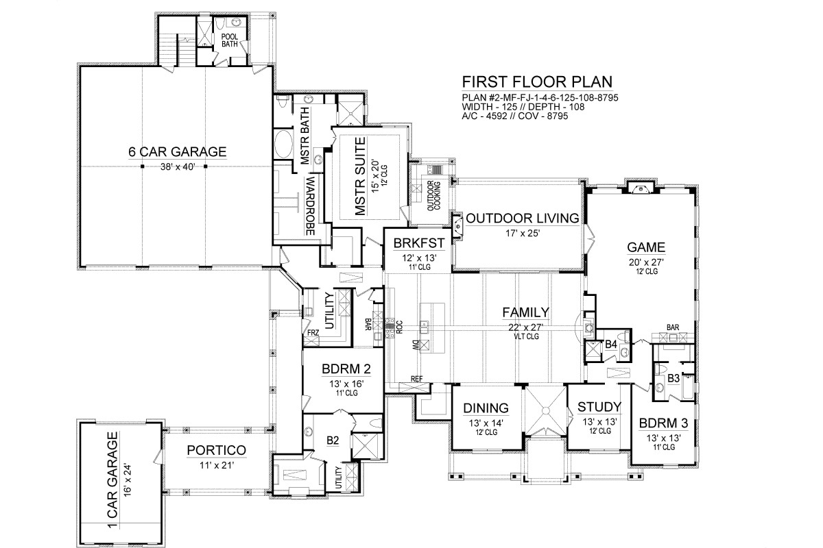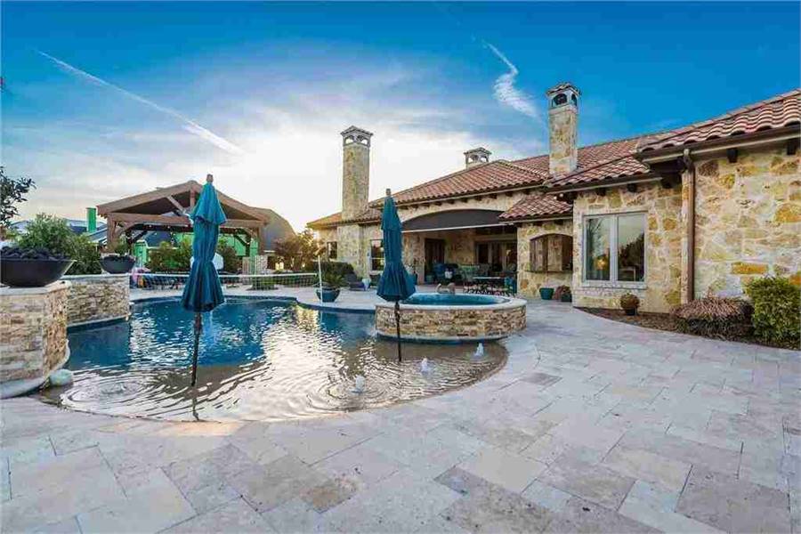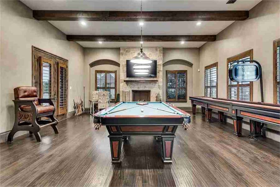A spectacularly unique style that finds its roots in the estates of the Mediterranean coast, this 1.5 story plan has a ton of great spaces. With 4,592 square feet to offer, the open concept, 4 bed 5 bath layout is sure to feel larger than life. For starters, check out the 7 car garage that is attached near the rear of the home. This massive space ensures parking and storage for everyone. Inside you'll discover other great spaces such as a stunning family room and gourmet kitchen, along with a covered outdoor entertainment area. You'll love the privacy of the study, while the kids will certainly love the nearby game room. Notice how every bedroom has its own bath and walk-in closet, including the master which has a totally unique spa bath. The upstairs level provides a large walk-up attic, full of clutter-free storage.
