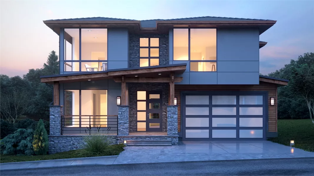 From sweeping mountain ranges to relaxing beach waves, this gorgeous modern home is perfect for a wide variety of views thanks to its reversed floor plan. This 2-story, 3,315 square foot home has its main living spaces on the second floor, meaning that the large windows offer beautiful scenery all day long. In addition to the breathtaking sights, you'll enjoy the comfortable 3 bed. 3.5 bath layout. The first floor has a 3-car garage along with 2 bedrooms, each with their own bath, and a large rec room with access to a covered deck. Upstairs finds the massive kitchen and family room combined space, along with a formal dining room, a full master suite, and even a private den/office which can double as a nursery for new family additions!