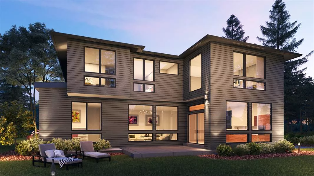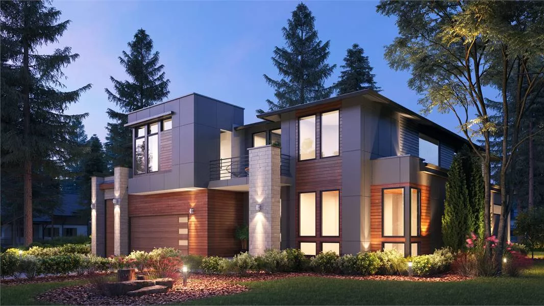 A grand layout with an equally impressive and unique facade means that this marvelous modern home is a true rarity. Boasting 4,683 square feet of space, this plan is grand in every sense of the word. From its 4 bedrooms, each of which has a  private en-suite and walk-in closet, to its stately features like the sweeping grand staircase and totally open living room and kitchen, every inch of this plan is breathtaking. And while the first level provides a full guest suite along with all of the main rooms, the second houses the master as well as a bonus room and the auxiliary bedrooms for the kids.