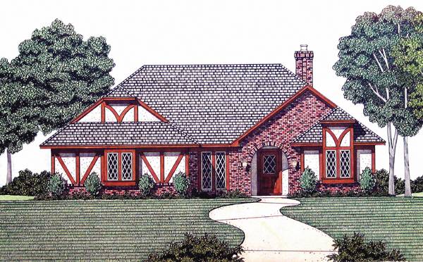 Unusual ceilings abound in this compact design. The kitchen, both rear porches and the living room have sloped ceilings. The master suite is fit for a king featuring a private porch with skylights and a his and her bath.