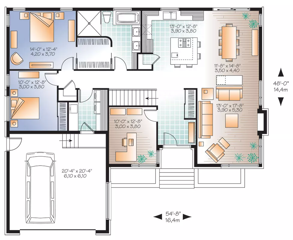 You'll be proud to own this three-bedroom design, with its contemporary exterior. Off the foyer, the peaceful home office could serve as a bedroom. If you like to entertain guests, note how the island kitchen flows into the dining room and the great room. Two bedrooms are located at the "west" end of the home, near a deluxe hall bath.