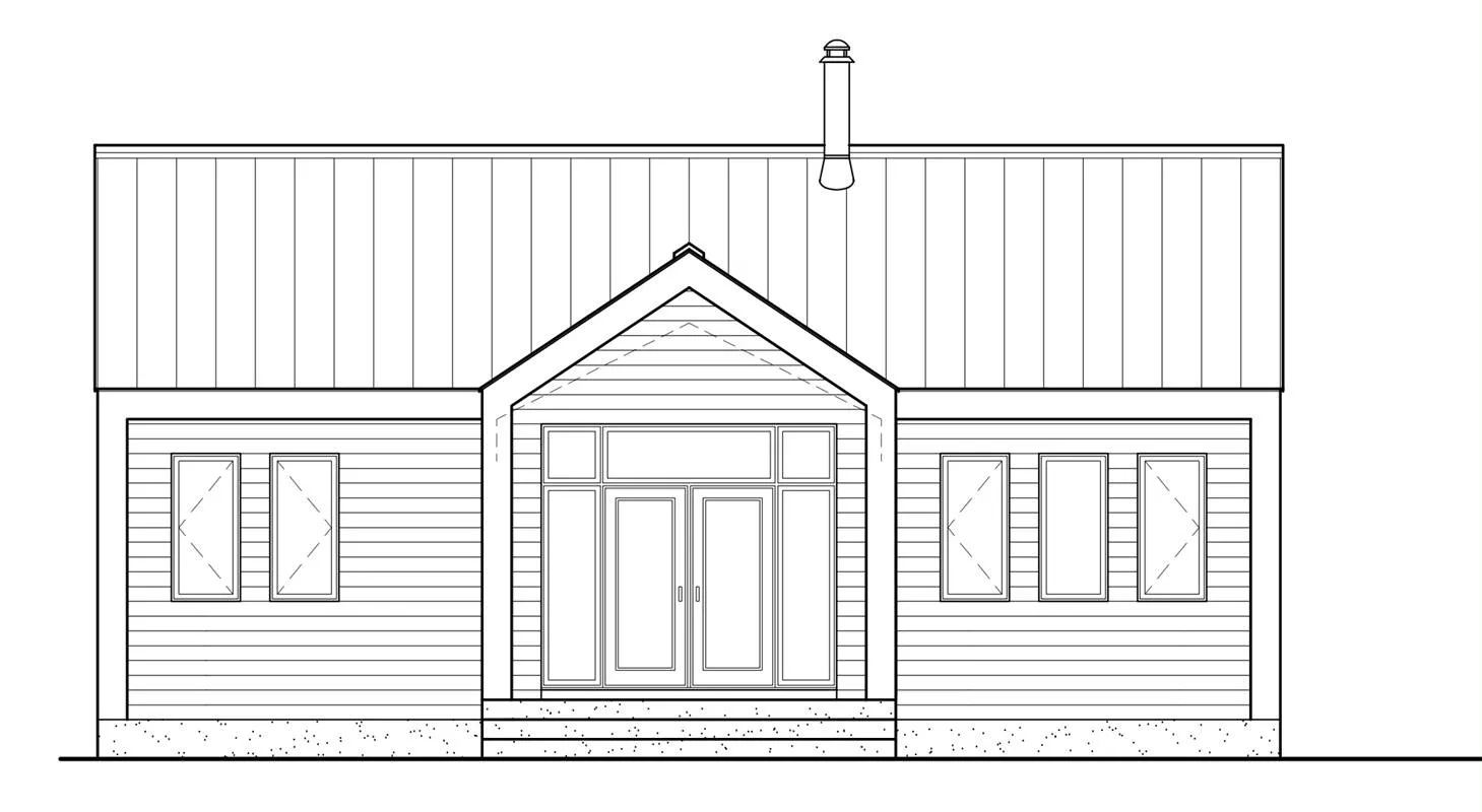 What a charming modern uptake on a classic cottage with its metal ribbed roofing and sleek use of mixed materials and expansive windows. This 1 story 2 bedroom, 1 bath one story home would be perfect for a vacation home, or even just as a home to downsize to and lower your upkeep. Entering from the sliding doors off the 10’ deep front deck, you’ll immediately feel the warmth of the atmosphere created by the central fireplace and the openness of the combined kitchen, dining and living areas. The kitchen has additional overflow seating at its large island. Both bedrooms claim the left side of the home and have access to the large full bathroom that also has a space for a W/D.