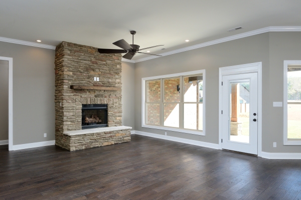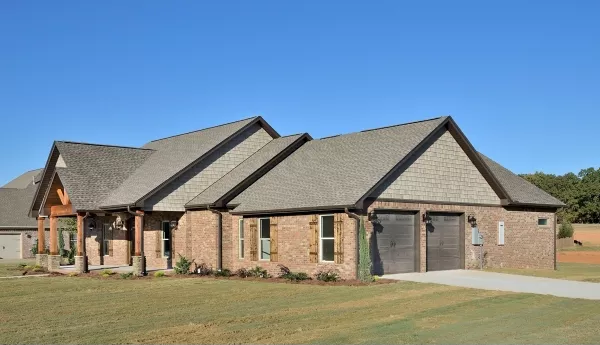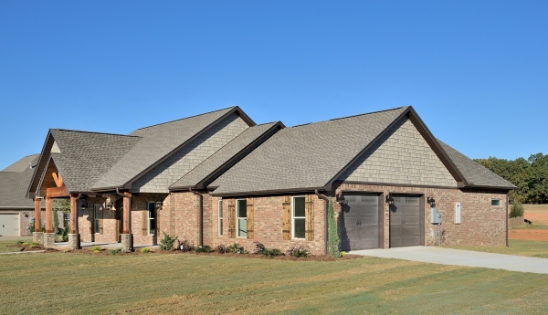 This mid-size affordable home features separate master baths for him and her. Both baths have private access to huge walk in closets and hers has a shoe closet too. Both baths share only the glassed in shower. The master suite is king size and features a step ceiling for added elegance. The open concept of the main living areas is great for entertaining and it appears super spacious. The kitchen features an open island with bar, plus a built-in pantry and anothe one off the laundry room. The living room is warmed by a massive stone corner fireplace; a built-in entertainment center will be another focal point. Two liberal-size bedrooms with a jack and jill bath round out the amazing amenities in this stunning home.