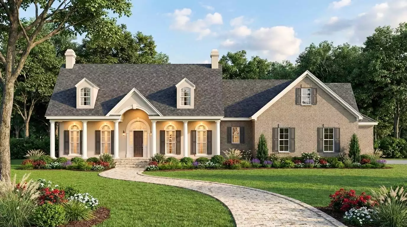This classic country design is one of our most-requested home plans. Front and back porches give you plenty of room to relax and enjoy the fresh air. A cathedral ceiling tops the versatile great room, where a fireplace adds ambience. A well-designed, functional kitchen floor plan features plenty of cabinetry by KraftMaid and appliances by Whirlpool. The secluded master suite boasts a posh bath flanked by walk-in closets. The main floor measures 2,286 square feet. The upper floor provides space for future expansion and storage.
