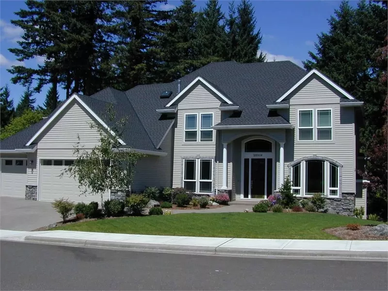 The second floor houses four bedrooms plus a bonus room, which can be customized. The luxurious master suite includes a large bedroom with a stepped ceiling, a bath with a whirlpool tub and shower, and a his-and-her closet with a built-in ironing board.