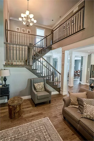 This gorgeous 3,506 square foot Craftsman style house plan is ideal for any active family! Entering into the home from the front porch, you'll find yourself in the foyer, with the home office, laundry and powder room off to the right and the rooms that make up the bulk of the family gathering space to your left. The dining room, living room and kitchen all flow seamlessly from one to the next. The kitchen features a center island, as well as a walk-in pantry and breakfast nook. Moving upstairs to the second floor, you'll find not only the 3 secondary bedrooms, but also the master suite, which features a sitting area, the master bath with dual vanity sinks, separate shower/but and walk-in closet. The partially finished basement includes an indoor basketball court, mechanical room, storage and unfinished space for up to 3 additional bedrooms, bathroom, etc. - it's open space and you get to decide what it becomes!