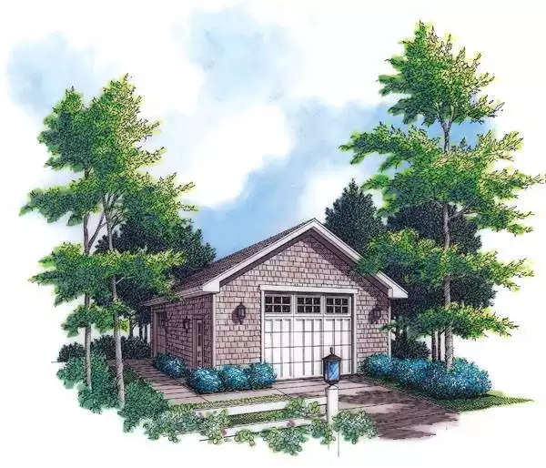 This clever garage design offers space for two vehicles in the front and an additional door on the side for garden equipment or a riding lawn mower (or perhaps another vehicle). Cedar shingles on the exterior beautifully set off the carriage lamps at each door.