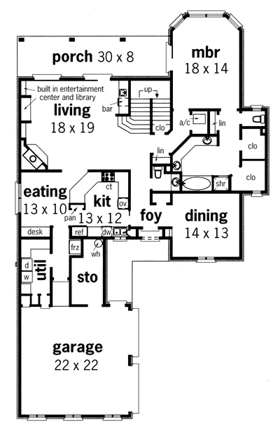 Traditional European styling accents the exterior of this well-designed two-story home. Features of the living room include a corner fireplace, a wet bar and a built-in entertainment center and library. A built in desk in the eating area makes a great computer workstation. The master suite is secluded on the main floor, and boasts private porch access and an amenity-filled bath. Typical ceilings heights are 10 on the lower level and 8 on the upper level.