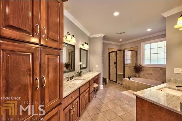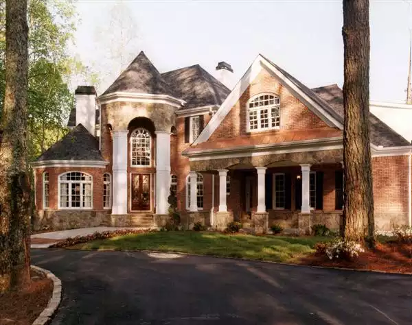 A lovely backdrop for this home's welcoming foyer, a curved staircase leads to extra bedrooms on the upper floor. On the main level, a two-sided fireplace anchors the impressive master suite. A second fireplace warms the two-story great room. An unusual semi-circular island makes the gourmet kitchen both functional and inviting. A few steps away, a two-story library is a welcome retreat from your busy schedule.