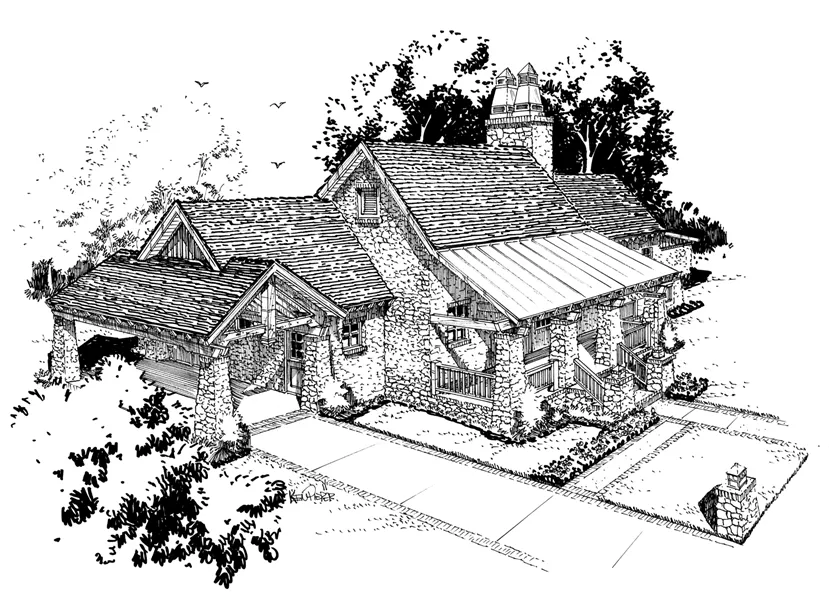 Stately columns and striking stone lend a Craftsman feel to this one-story house plan, with three bedrooms, 2.5 baths and an affordable 1,776 square feet of living area. Beyond the front porch, a corner fireplace warms the comfortable great room in this home plan. The country kitchen showcases a convenient pantry. A second fireplace enhances the deluxe master bedroom, where a handy door provides porch access. In the private bath, you'll find a sizable sink and a fabulous shower. Note the good-sized walk-in closet. Builders point out the breezy carport, as well as the handy office off the master bedroom of this home design.