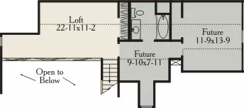 The angled positioning of the kitchen, between the breakfast and dining rooms, provides a convenient working arrangement as well as a beautiful design. Ample pantry and cabinet area is also provided. Upstairs, the optional loft opens to the living room below; and future expansion is accessible adding 365 square feet to the living area.