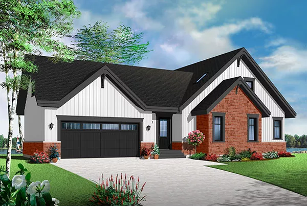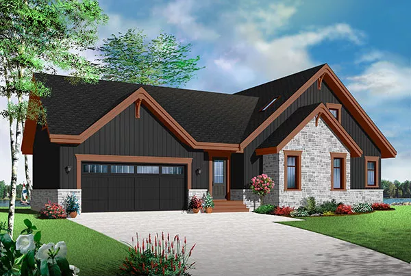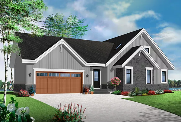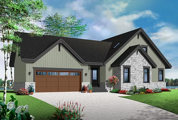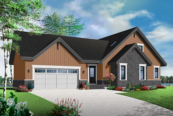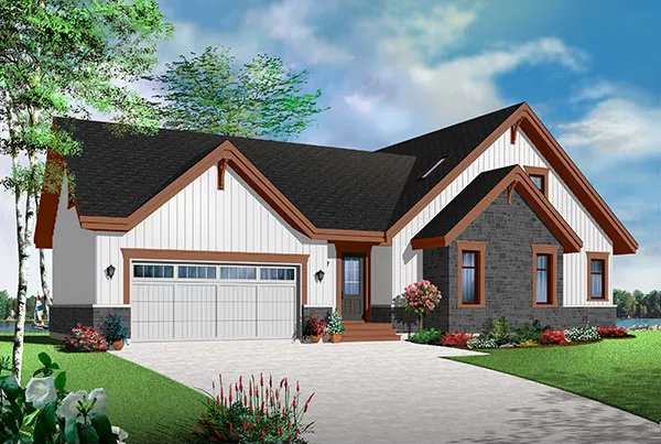 This three-bedroom cottage design will be the envy of your neighbors. The welcoming foyer directs your guests into the pleasant living room, complete with vaulted ceiling and two-sided fireplace. The open kitchen boasts an island snack area for four. Any meal will be perfect in the sophisticated dining room. A walk-in closet is found in the master bedroom. Laundry facilities are located in the posh full bath. Two secondary bedrooms share a bath on the upper level. Don't overlook the daylight basement, with its expansion potential.