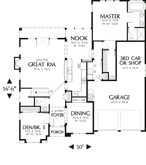 With a tandem three-car garage, this spacious home still remains compact enough for narrow lots.