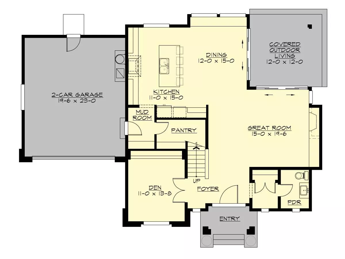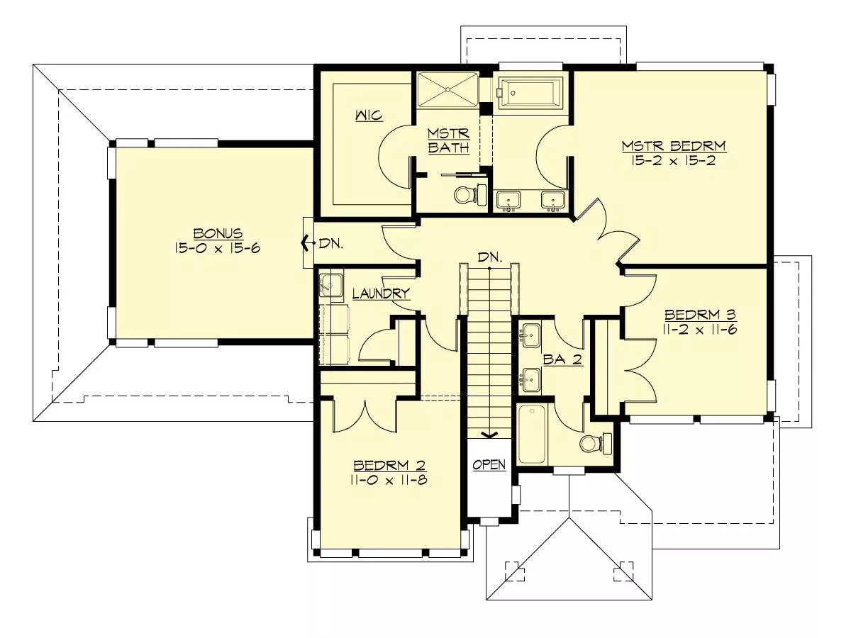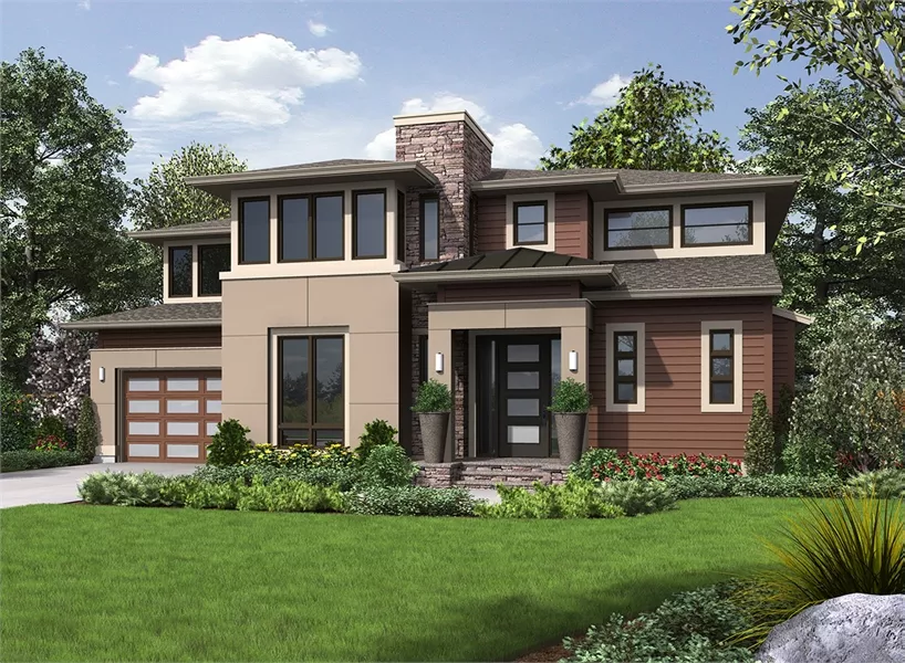A great plan for anywhere from a bustling city to a quiet suburb, this gorgeous modern prairie-style plan is a wonderful family home. 2 stories and 2,595 square feet of living space offer you a comfortable layout which includes 3 large bedrooms and 2.1 bathrooms. The amazing facade is only the beginning as you step inside to discover a great layout. Past a private den/office, discover the  open family room which flows into the dining room and island kitchen, with the covered patio and 2-car garage both nearby. Upstairs you'll find the bedrooms, including the master and its full en-suite and walk-in closet. There is also a large bonus room which can be used as another bedroom if needed!