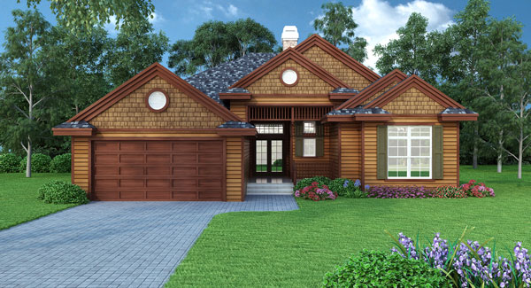 This wonderful home won 1st Place in The House Designers & ENERGY STAR's international design competition in the Small & Efficient house plan category. Repeated gables draw attention to this beautiful one-story home. Inside, a fireplace enhances the spacious great room. The sensible kitchen serves any meal with ease. The deluxe master suite boasts a corner garden tub and an oversized shower.