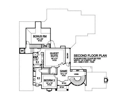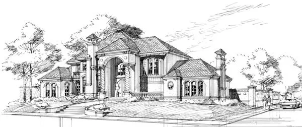 Feel right at home as you walk into this stunning Mediterranean mansion house plan. The foyer is flanked by a study with warming fireplace and the elegant living room. You'll love the openness between the living room, music room and formal dining room with direct access to the butlery, utility room, pantry, and kitchen for ease in serving. The kitchen provides a free-standing island and breakfast bar for sharing with the family room and breakfast area. A built-in desk in the breakfast room is only one of many built-ins throughout this plan. The corner fireplace in the family room makes the area cozy. The luxurious master suite boasts a built-in desk, trey ceiling, bayed window sitting area, lavish bath with his and hers vanities, his and hers private baths with separate shower, whirlpool tub, gym, his and hers closet with a cedar closet in hers'. A one and two-car garage each sit at the rear of this mansion house plan. An elevator sits next to the pantry in the rear or the curved stairs off the foyer in the front. Upstairs a family bedroom with trey ceiling, walk-in closet and master bath shares space with a bonus room, game room, loggia, built-ins, and large guest room that could be converted to an in-law suite. It boasts his and hers vanities, separate shower, tub, trey ceiling and easy access to the balcony.