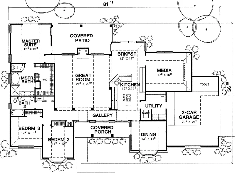 This traditional style home exterior is beautifully and carefully detailed inside and out. Vaulted ceilngs are in the master suite and great room, both of which have direct access to the rear porch. A media room is conveniently located by the kitchen. The garage is side entry.