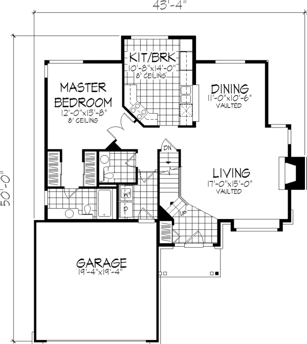 A charming stone exterior with a lovely oversized window and attractive detailing lends a cottage flavor to this two-story design. Inside, the entry leads directly into the vaulted living room, where a fireplace sets a tranquil mood. In the dining room, a neat pass-through to the kitchen makes serving even formal meals quick and easy.