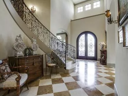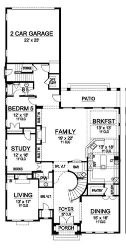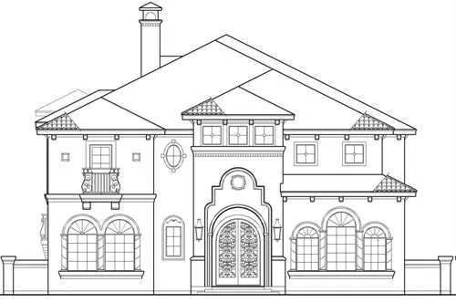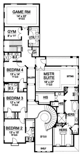 This luxury house plan is perfect for a narrow lot. The two story foyer offers views of the spiral staircase ahead and the barrel vaulted ceilings. A great way to welcome guests. The open foyer is flanked by a gracious living room with warming fireplace and the formal dining room with pantry and butlery. The family gathering area consists of the kitchen, breakfast room and family room. The center warming fireplace helps keep this area cozy. Access to the patio can be achieved behind the family room. The gourmet kitchen provides a free-standing island for additional counter space. The breakfast bar can be shared with the family room and breakfast area. A quiet study with built-in bookcases and family bedroom with walk-in closet and full bath sit on the left side of the house plan. A two-car garage with rear entry sits at the back of the plan. Upstairs, three family bedrooms with walk-in closets and full baths share space with a gym, utility room, game room and gallery. The luxurious master suite boasts a sitting area, bar, lavish bath with his and hers private baths, his and hers vanities, separate shower, tub, his wardrobe, and hers wardrobe with built-ins. An optional elevator is available for this luxury house plan.